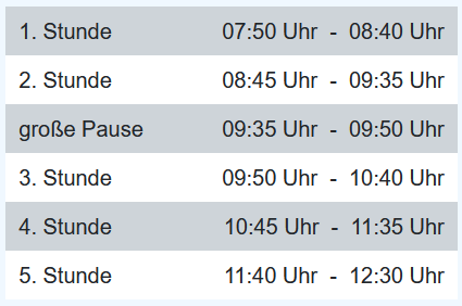 Unterrichtsbeginn ist um 07:50 Uhr.
