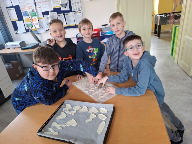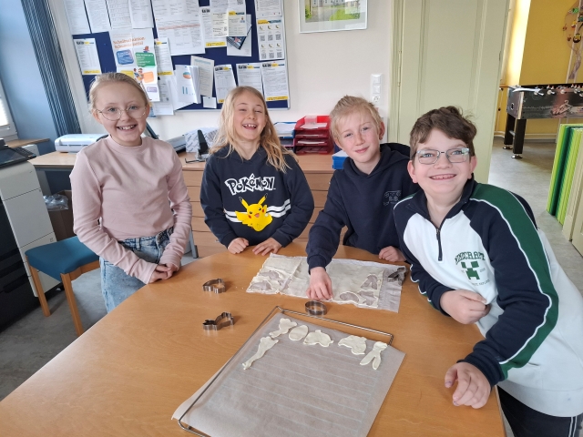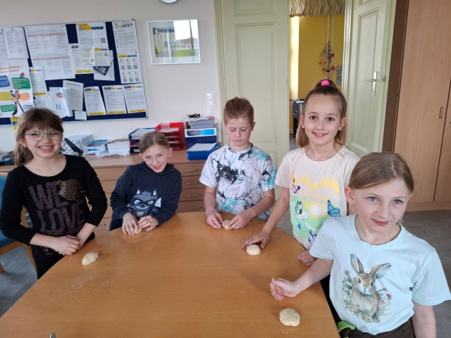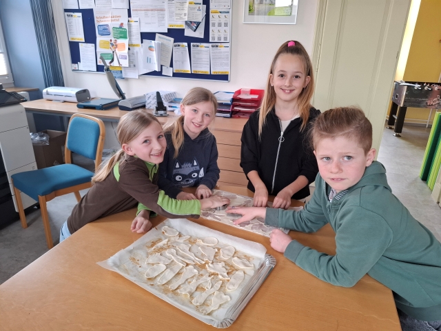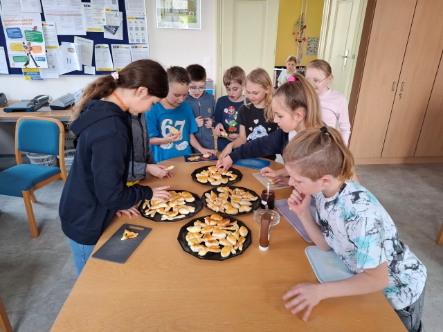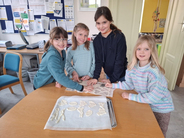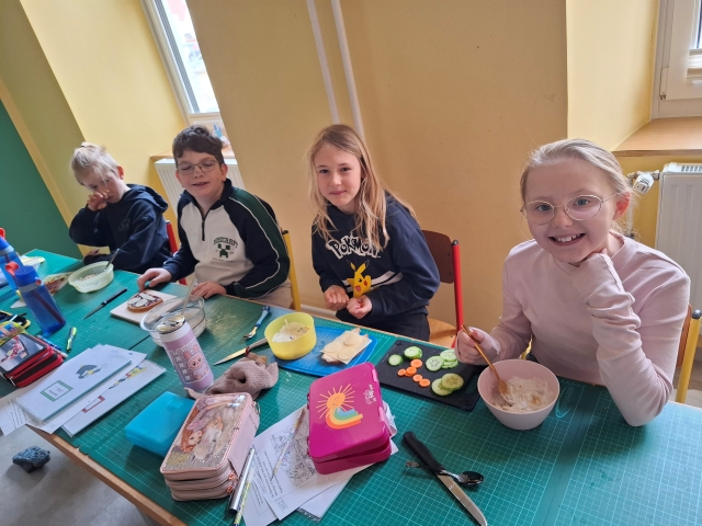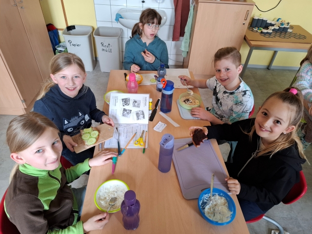 In der Woche vor den Osterferien war in der Osterhasenwerkstatt viel los. Die Kinder der 3. Klasse haben fleiĂig gebacken, gebastelt und kreativ gearbeitet. Dabei entstanden sĂŒĂe Osterkekse und leckere Karottenweckerl. AuĂerdem haben die Kinder lustige Brote und ein Bananen-Schoko-Joghurt zubereitet. Ein echter Genuss fĂŒr alle. Neben dem Kochen und Backen wurde auch die Fantasie angeregt: Die Kinder haben eine spannende Osterhasengeschichte geschrieben und fröhliche Osterbasteleien gestaltet. Es war ein buntes, kreatives und köstliches Osterprojekt, das allen SpaĂ gemacht hat.
